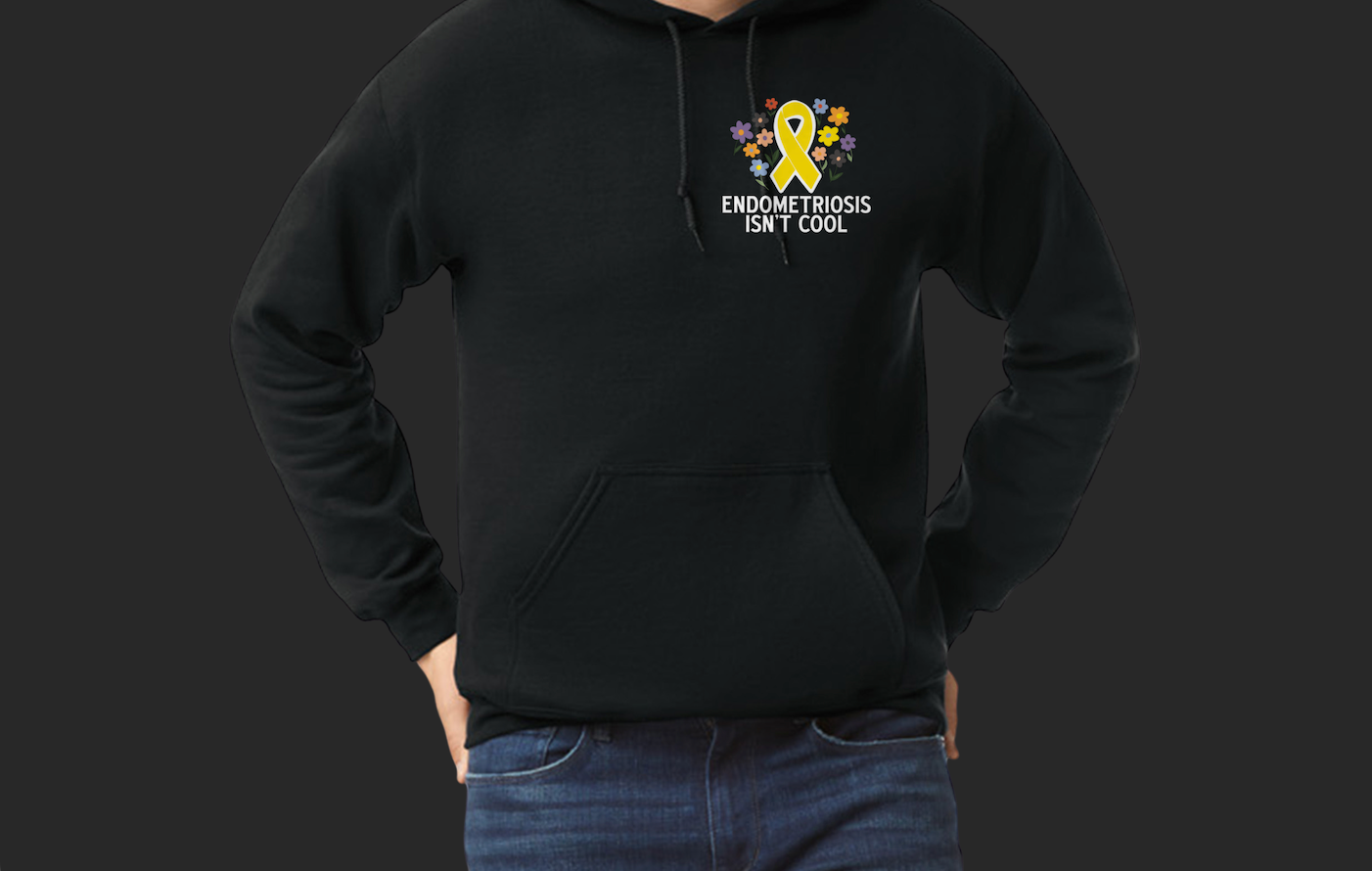 The front of the shirt features a yellow endometriosis awareness ribbon surrounded by a field of flowers that represent all the endometriosis advocates planting "seeds" of awareness for others in the endometriosis community, and the back of the shirt includes important facts about endometriosis that aim to help spark conversation. Sweatshirts also include a special bonus message on the sleeve! (Note, the sleeve message is NOT included on t-shirts.) All shirts come with an information card that contains resources for learning more about endometriosis.